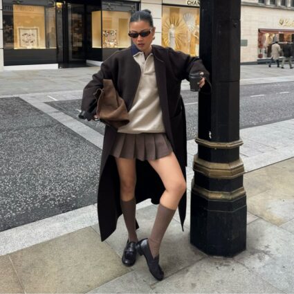 After months of heavy layers, lighter dressing is finally within reach, and socks quietly help bridge the seasonal gap. This outfit proves it. Pull out your favorite pleated mini skirt…