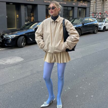 So you’ve got the viral funnel-neck windbreaker – now it’s about styling it like you know what you’re doing. Skip the full athleisure route and lean into contrast like a true fashion insider…